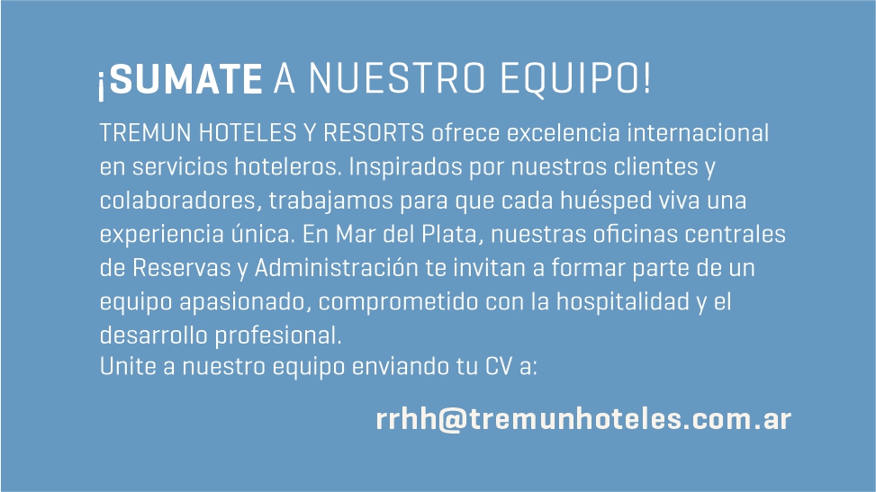 TREMUN HOTELES desarrolla y gerencia negocios hoteleros propios y de terceros. Inicia sus actividades en el 2005 con un proyecto innovador liderado por un grupo de profesionales con amplia experiencia en el sector hotelero, gastronómico y turístico nacional.