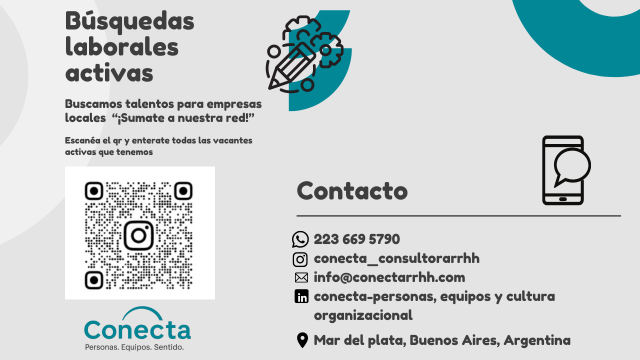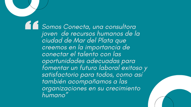 Somos Conecta, una consultora joven de recursos humanos de la ciudad de Mar del Plata. Creemos en la importancia de conectar el talento con las oportunidades adecuadas para fomentar un futuro laboral exitoso y satisfactorio para todos, como así también acompañamos a las organizaciones en su crecimiento humano.